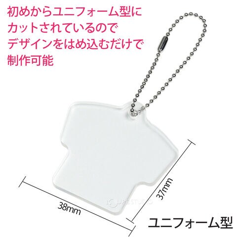 初めからユニフォーム型にカットされており、デザインをはめ込むだけでオリジナルのキーホルダーがつくれます。