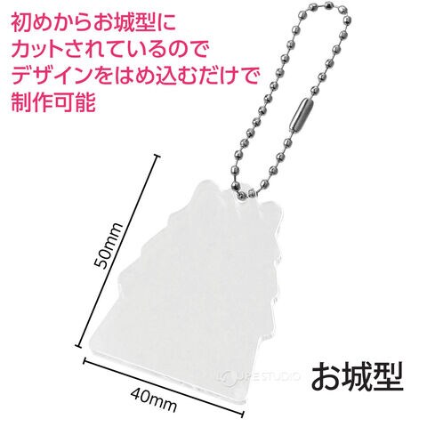 初めからお城型にカットされており、デザインをはめ込むだけでオリジナルのキーホルダーがつくれます。