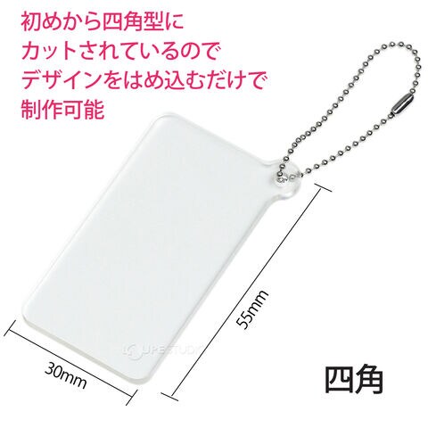 - 初めから四角型にカットされており、デザインをはめ込むだけでオリジナルのキーホルダーがつくれます。