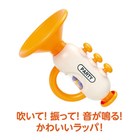 - 吹いても振っても音が鳴る、楽しさたっぷりのラッパおもちゃです。
