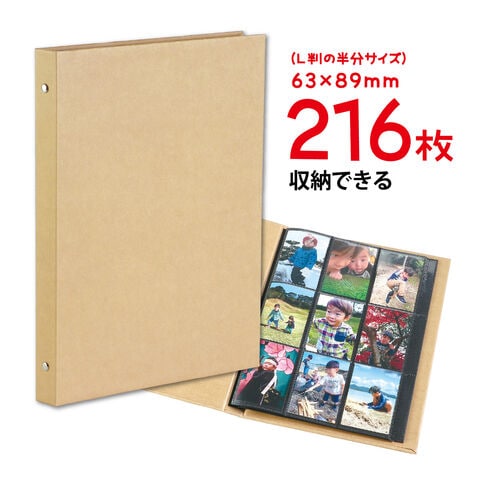 - ハーフサイズ(63×89mm)9面(3列3段)、24ページ(216枚収納)。