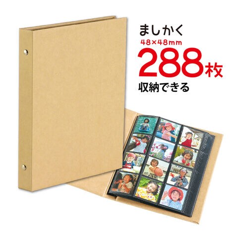 - ましかくサイズ(48×48mm)12面(3列4段)、24ページ(288枚収納)。