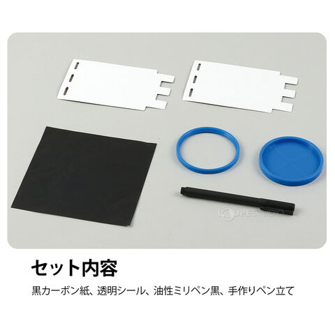 セット内容黒カーボン紙、透明シール、油性ミリペン黒、手作りペン立て