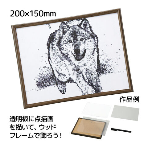 透明板に点描画を描いて、ウッドフレームで飾ろう!黒色の油性ミリペン付き!