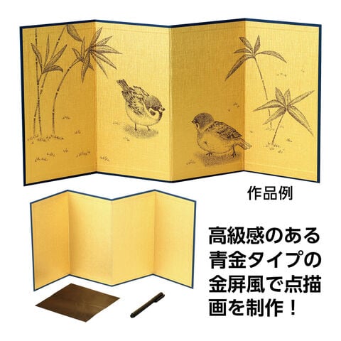 | セット内容 | 金屏風四曲×1、油性ミリペン黒×1、黒カーボン紙×1 |