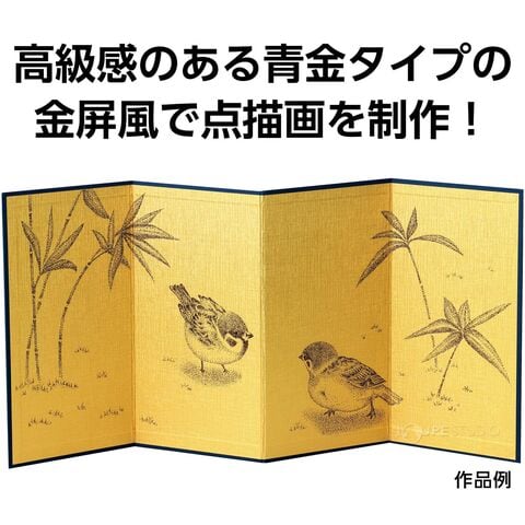 - 色鮮やかな金屏風に油性ペンで点描を描くセットです。