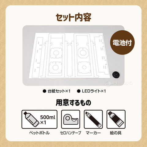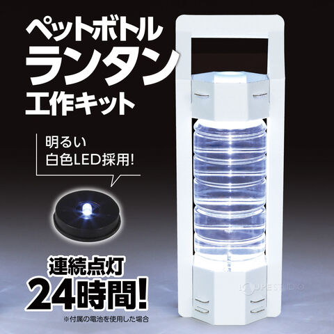 • ワークショップで人気の「ペットボトルランタン工作キット」に、進行マニュアルが付きました!白色LEDを採用し、連続点灯約24時間の明るさを楽しめます。