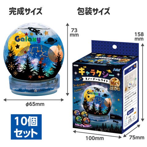 | セット内容 | ギャラクシースノードームキット(スノードームボトル×1、LEDボトルステッカー(ライト)× 1、デザインシート×1、ホログラムグリッター(星)× 1、ギャラクシーシール×1、水のり×1)×10、マニュアル(解説)×1 |