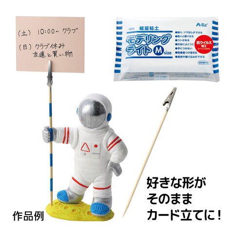 乾燥後に削ったり磨いたりできる粘土とクリップを使ってメッセージホルダーが作れるキットです。