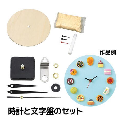 時計と文字盤のセット。粘土で装飾を行います。バニラ色のねんど100gが付属します。