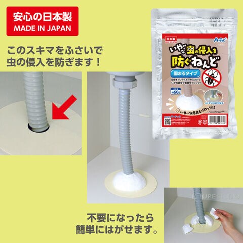 押し込むだけでOK!配管まわりのスキマを塞いで嫌な害虫の侵入をブロック!