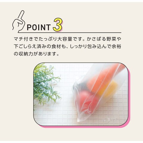 • 湯煎調理や電子レンジ加熱、冷凍保存まで幅広く使える便利なポリ袋です。