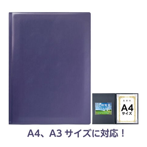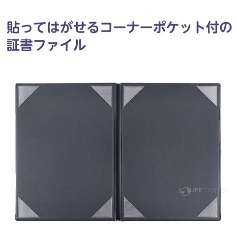 - 貼りかえ可能なコーナーポケットを採用し、A4・A3・写真などを自在にレイアウトできる証書ファイルです。