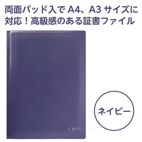 貼ってはがせるコーナーポケットの証書ファイル ネイビースペック