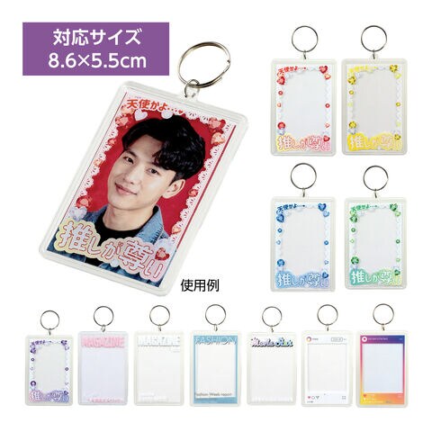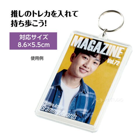- お気に入りのトレカを挟んで持ち歩ける、ワンタッチ開閉タイプのクリアキーホルダーです。