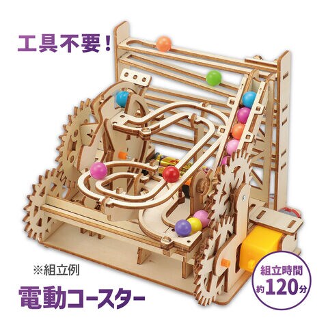 - スイッチひとつでボールが走り続ける、木製電動コースターの工作キットです。