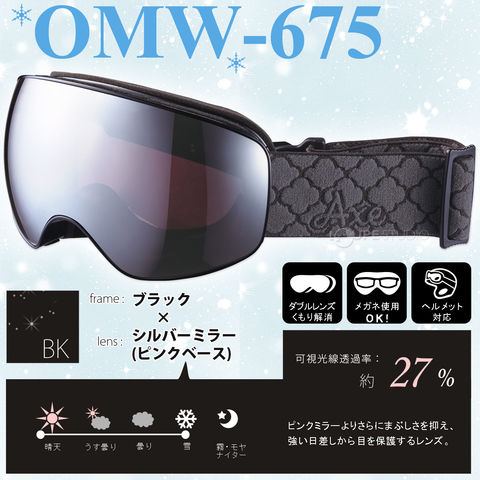 ゴーグル アックス 正規品 眼鏡対応 OMW-675 男女兼用 ユニセックス メンズ レディース 男性用 女性用 ブラック パールホワイト ダブルレンズ 曇り止め スキー スノーボード スノーゴーグル AXE