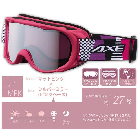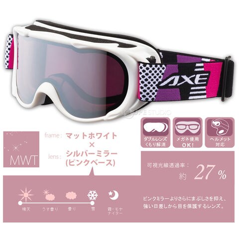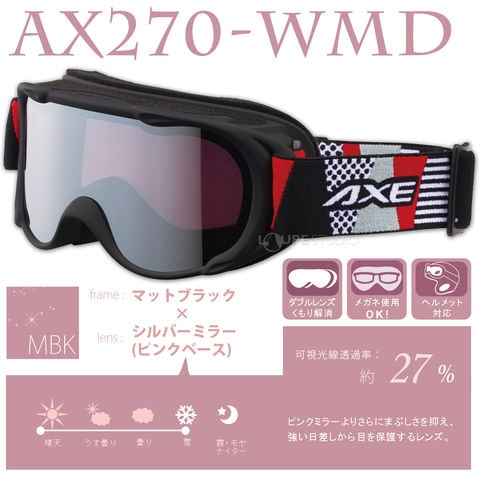 ゴーグル アックス 正規品 眼鏡対応 AX270-WMD 子供用 ジュニア Junior ティーンズ 10代 レディース スキー スノーボード スノーゴーグル スノボ スノーボードゴーグル ダブルレンズ マットブラック マットホワイト マットピンクスペック