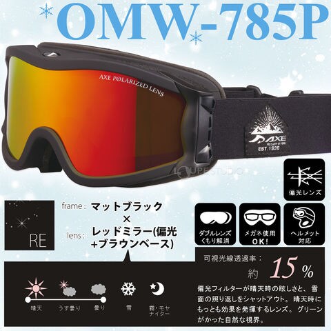 ゴーグル アックス 正規品 眼鏡対応 男女兼用 ユニセックス メンズ レディース 男性用 女性用 スキー スノーボード ダブルレンズ 曇り止め 偏光レンズ スノーゴーグル AXEスペック
