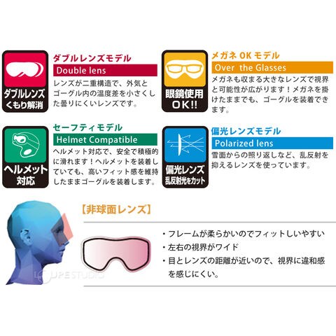 | その他 | 偏光レンズ、ヘルメット対応、メガネ対応、ダブルレンズ |
