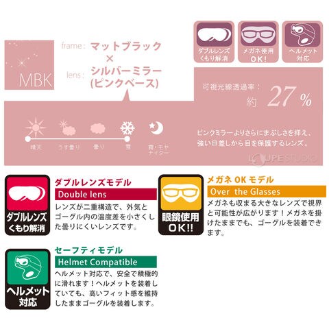 | フレーム×フェイスマスク×ミラー(レンズ) | MBK マットブラック×ブラック×シルバーミラー(ピンクベース) |