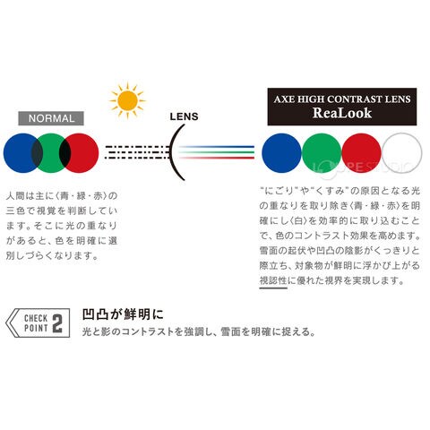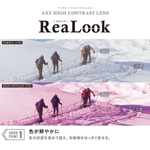 | レンズカラー | AX620-WCM PK/ピンクミラー(ライトピンクベース) AX620-WCM BU/スカイブルーミラー(ライトピンクベース)、ハイコントラストレンズ【 ReaLook 】 |