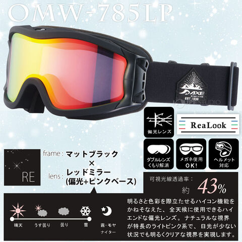 スノーゴーグル 眼鏡対応 スキー スノボ 偏光レンズ ダブルレンズ OMW-785LP UVカット ヘルメット対応 AXE アックススペック