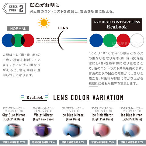 | フレーム×ミラー(レンズ) | NB ミッドナイトネイビー×スカイブルーミラー(ライトピンクベース) CA ディープカシス×バイオレットミラー(ライトピンクベース) |