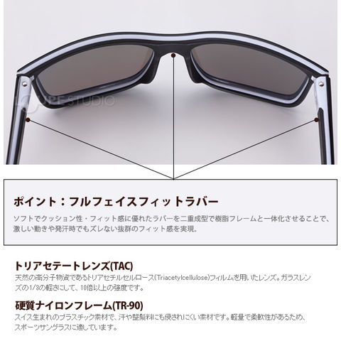 カジュアルなフレームデザインにフルフェイスフィットラバーを採用。アクティブなスポーツからタウンユースまでフォロー。レンズには流行のアイスミラーを採用した、6カーブモデル。