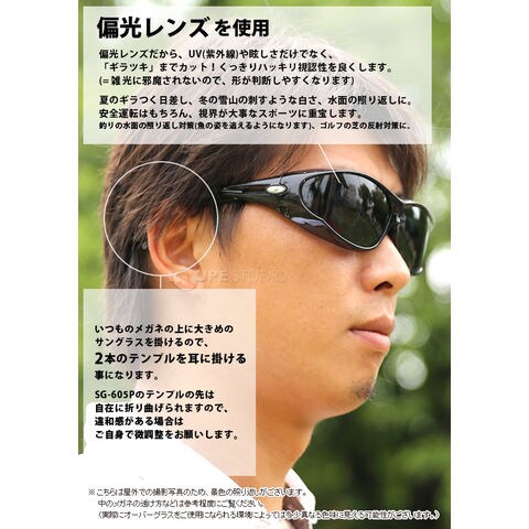 サングラス 偏光 オーバーグラス 偏光サングラス 日本製 メンズ スポーツ 自転車 釣り 運転 ドライブ ゴルフ ランニング アウトドア メガネの上から UVカット 紫外線対策スペック