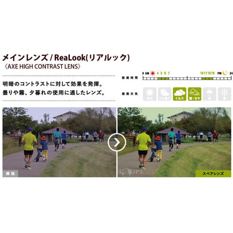 鮮やかな色、陰影を際立たせたクリアな視界を実現するハイコントラストレンズを採用。