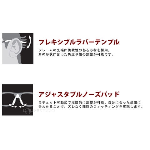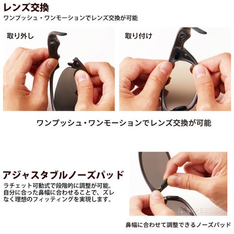 | 機能 | UV400プロテクション フレキシブルラバーテンプル アジャスタブルノーズパッド |