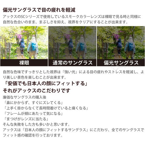 | 機能 | UV400プロテクション 偏光レンズ |