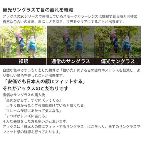 | 機能 | UV400プロテクション、偏光レンズ |