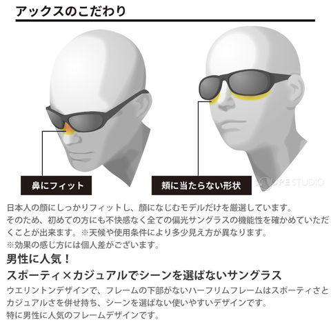 | 素材 | レンズ/トリアセテート(TAC) フレーム/ポリカーボネイト |