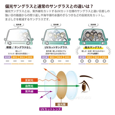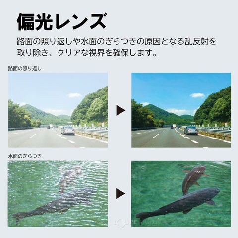 | 機能 | UV400プロテクション 偏光レンズ 滑り止めラバーテンプル |