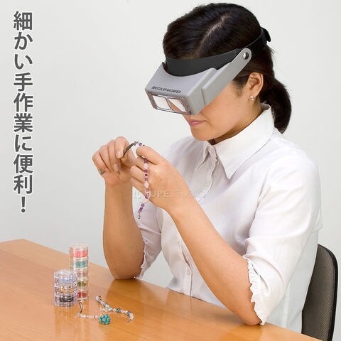 時計工具、手芸、トールペイント、シャドーボックス、ビーズアクセサリーにも非常に便利なルーペです。メガネを着用されたままでもルーペをご使用いただけます。両手が自由に使えて細かい作業に適しています。