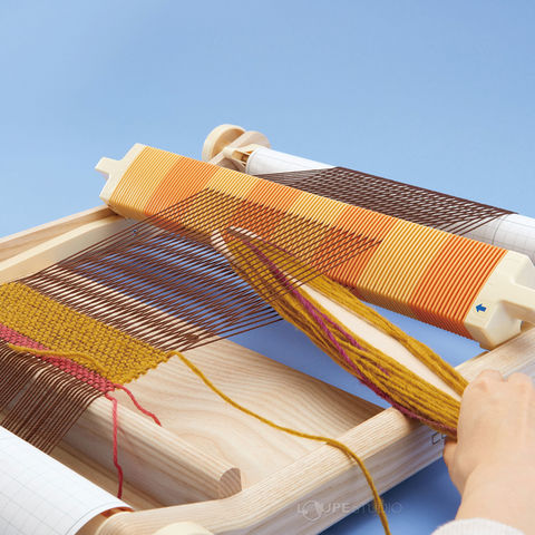 古布などお好きな布地を細長く裂いてたて糸に織り込み、自分好みの風合いの布地を楽しむ手織りのひとつとして注目を集めている裂き織り。毛糸等を使った手織りでも使用できます。持ち運びに便利な取手の付いた箱入り。長いサイズ(約4mまで)の織りも省スペースで。従来広いスペースを必要とした長いたて糸の準備が、手織り機本体内だけでできます。