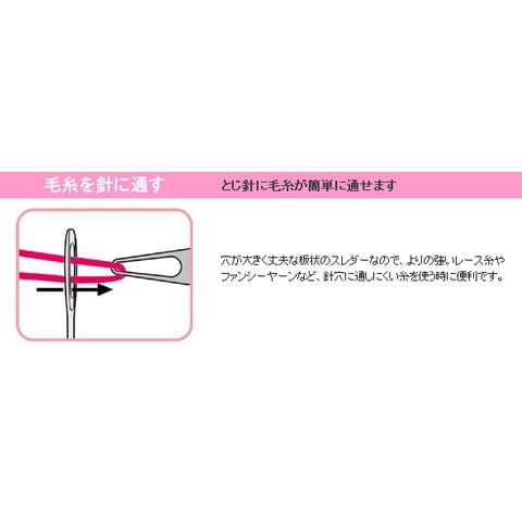 - とじ針に毛糸が簡単に通せます。