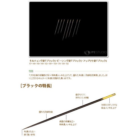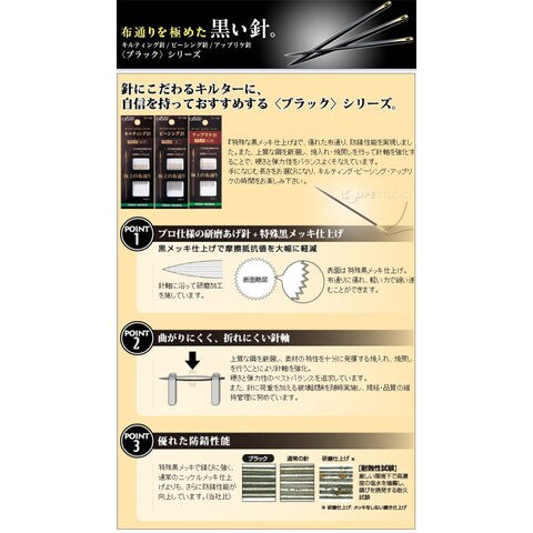 キルティング針「ブラック」No.12 57152 クロバー 縫い針 キルティング加工 手芸 裁縫 ソーイング用品 洋裁 ハンドクラフトスペック