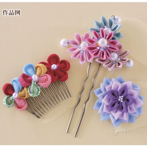 • できあがりサイズは〈SS〉(直径)約3.5cm。髪飾りやアクセサリーにぴったりな大きさです。6作品が作れるのアイデアレシピブック付です!