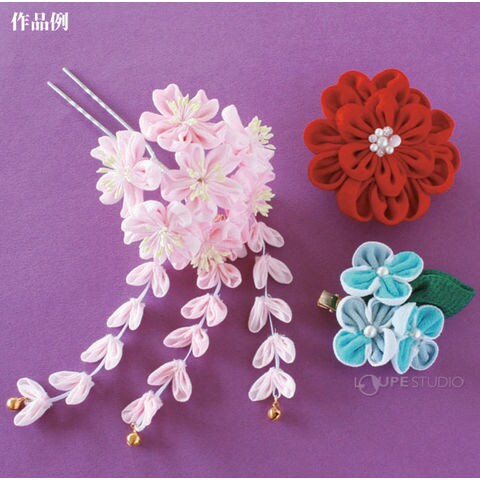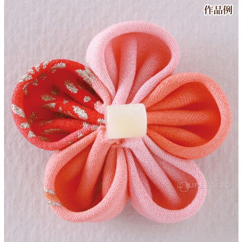 - できあがりサイズは〈SS〉(直径)約3.5cm。髪飾りやアクセサリーにぴったりな大きさです。6作品が作れるアイデアレシピブック付です!