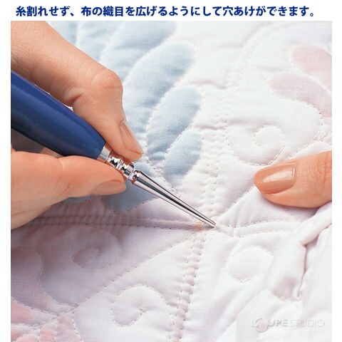 トラプントやブティに便利なツール。糸割れせず、布の織目を広げるようにして穴あけができます。