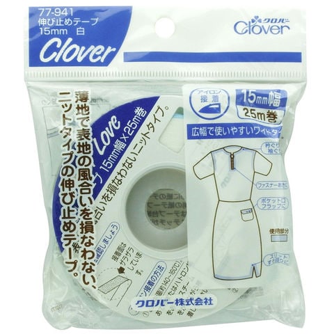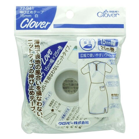 CL-伸び止めテープ 白15mm幅 クロバー 手芸 裁縫 ソーイング用品 洋裁 ハンドクラフト