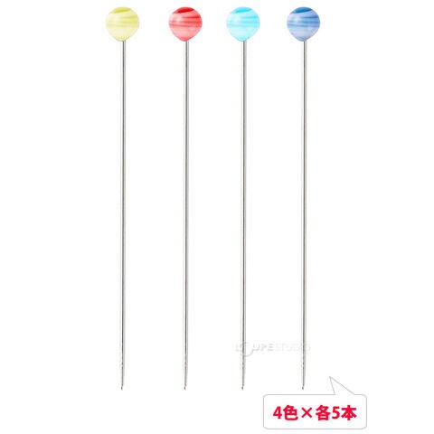 頭がマーブル模様の可愛い待針です。