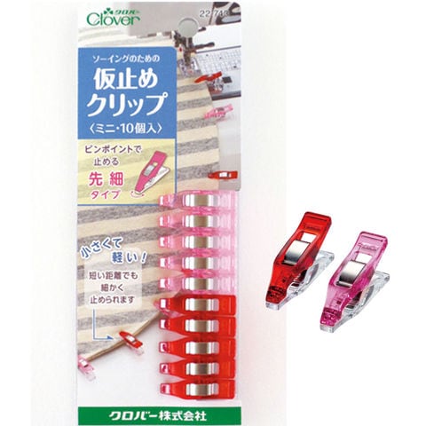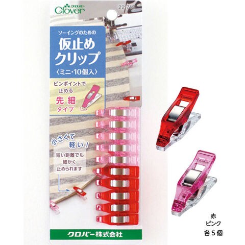 仮止めクリップ ミニ 10個入(赤・ピンク、各5個) クロバー 裁縫仮止めクリップ 手芸仮止めクリップ clover 仮止めクリップ