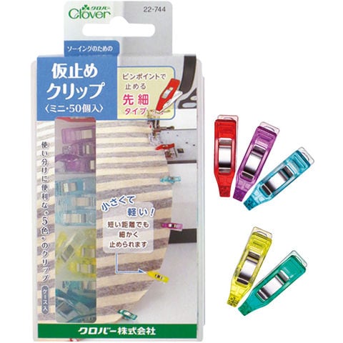 仮止めクリップ ミニ 50個入(赤・紫・青・黄・緑、各10個) 便利なケース付 クロバー 裁縫仮止めクリップ 手芸仮止めクリップ clover 仮止めクリップのレビュー
