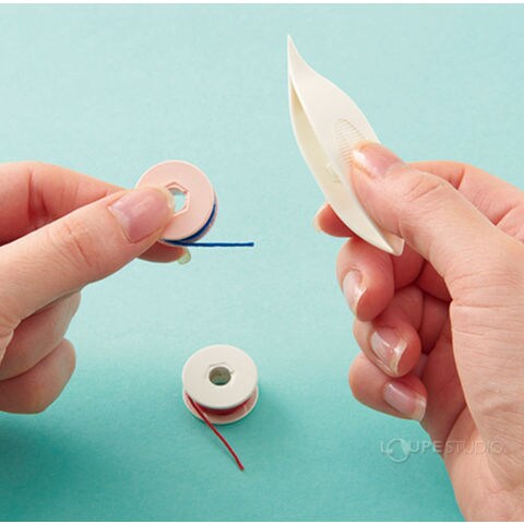 - 糸を引っ張るとボビン部分が回転するので、糸が繰り出しやすく、音が気になりません。