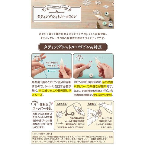 | 注意 | このボビンは、従来のタティングシャトルやタティングシャトルLには、取付けできません。 |