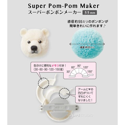 スーパーポンポンメーカー 55mm 58641 Clover クロバー 編み物 おもちゃ 女の子 動物ぽんぽん 動物ポンポン ソーイング用品 手芸 手作り マフラー 室内
